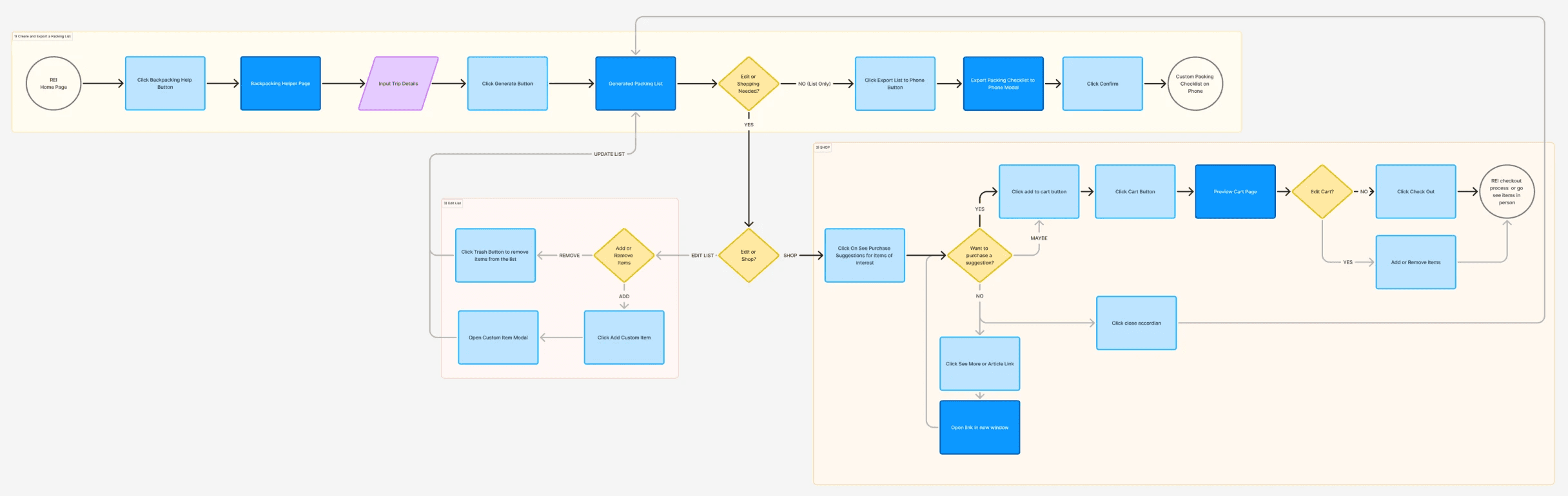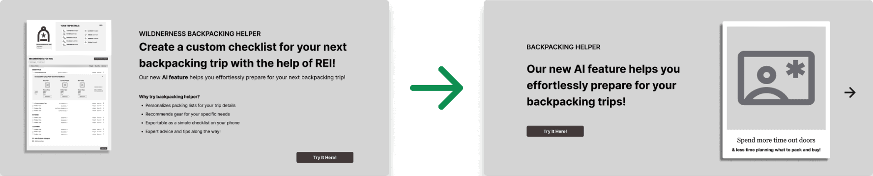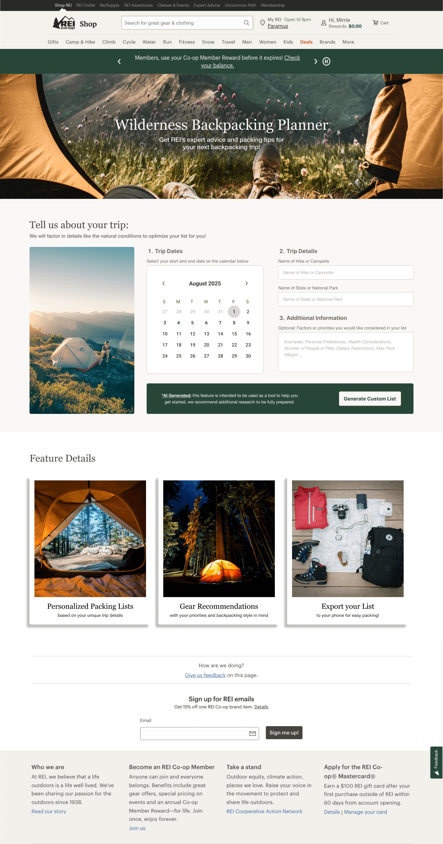 To design a feature that bridges the gap between backpackers needs for advice + guidance and REI’s existing resources to help beginner backpackers prepare for their trips in a fun and non-intimidating way.