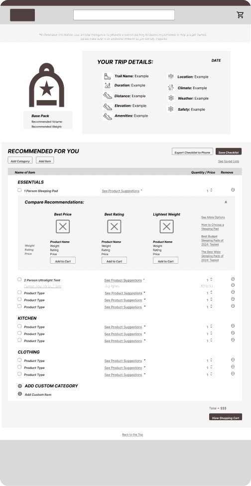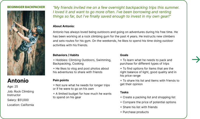 Research revealed my primary users were beginner to intermediate backpackers who are still learning want guidance on how to prepare for backpacking trips.