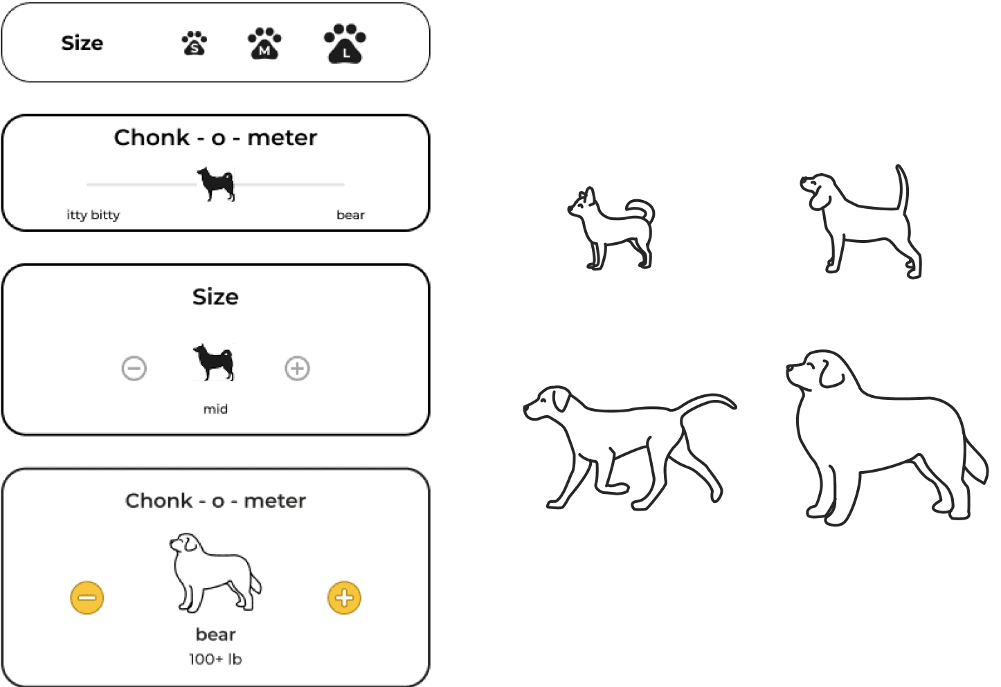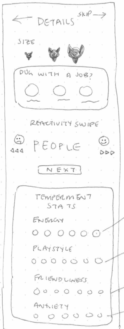 The existing design already included breed, temperament and play style. My goal was to add size and reactivity in such a way that did not disrupt the current flow, make it too long and infuse it with joy!