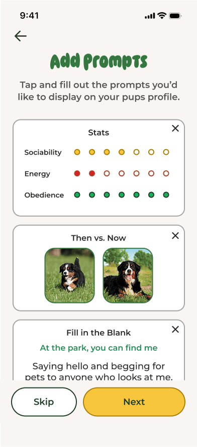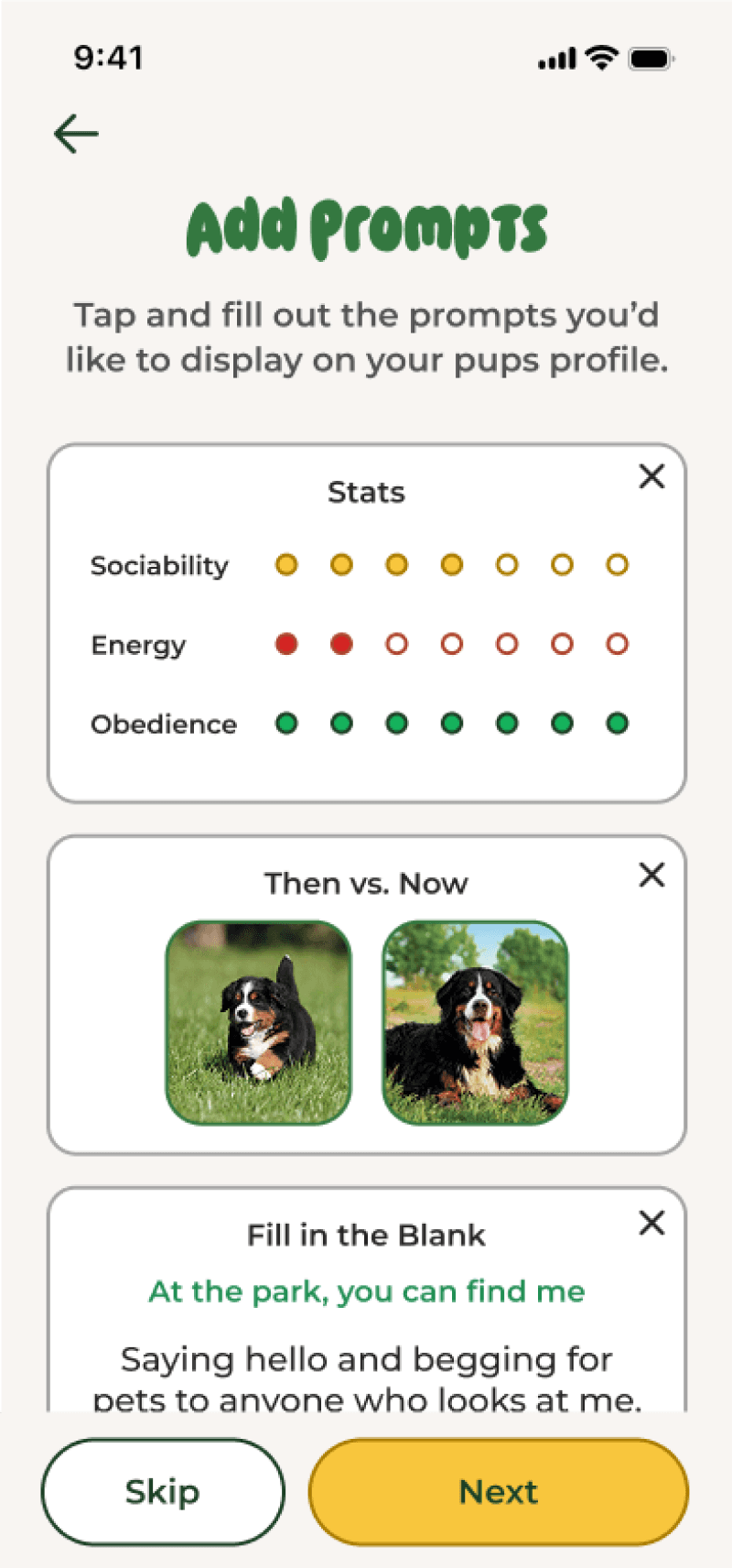 The profile enhancement designs helps dog owners include the specific information they want to share about their dog